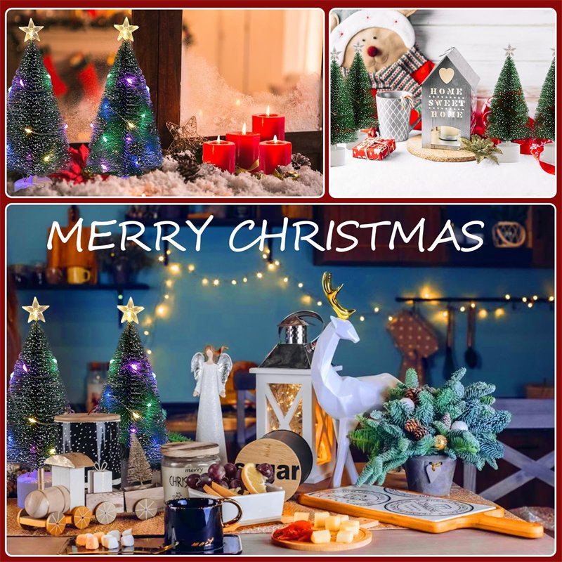 1.Tabletop Christmas Trees: The exquisite white cedar design and pleasant color with colorful lights will be perfect for Christmas indoor decoration, and it's a wonderful ideal for creating a festive atmosphere.